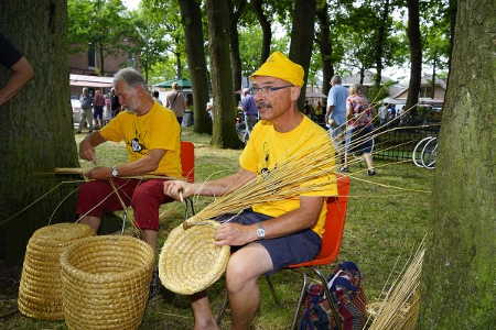 Apiplaza. Uiteraard is er aandacht voor het ambachtelijke imkerhandwerk zoals het korfvlechten, dat op de markt ook gedemonstreerd wordt.